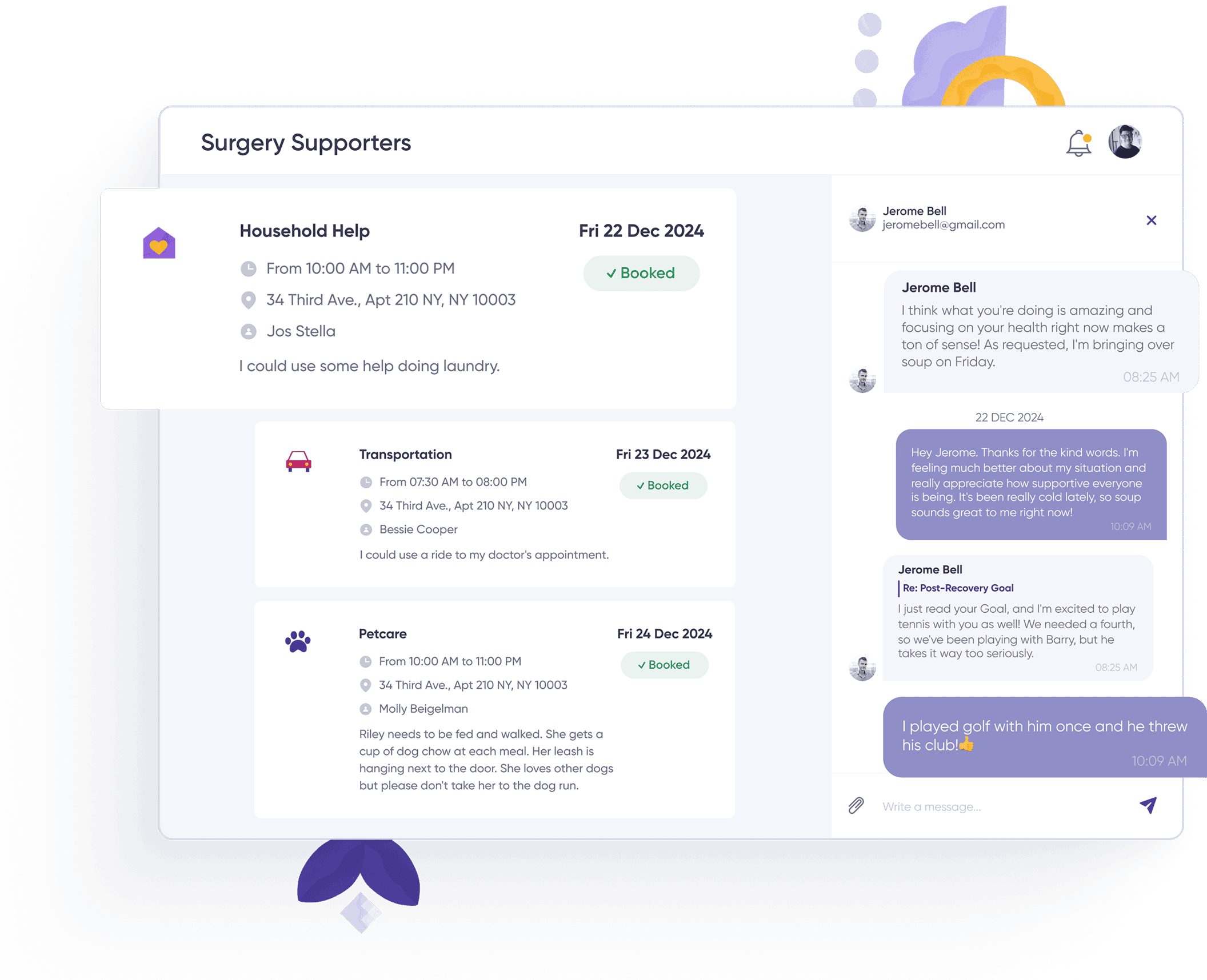 Support from family and friends will make a huge difference in your recovery, but it can be difficult to ask for help. Your Surgery Supporters area makes it easy to communicate with the people in your support network.